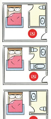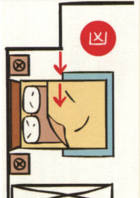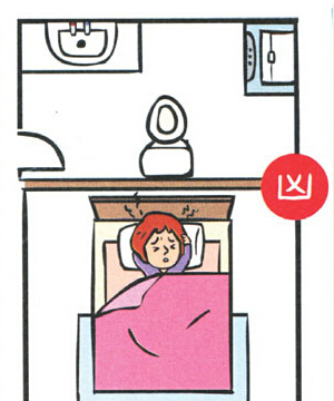 房间里的厕所对到床,情况比房门对到厕所严重,对到头,会头痛、思考时不能集中,住久(室内设计师培训)了会产生肿瘤、中风等;对到腰,会腰酸、心脏无力、水肿,住久了会产生糖尿病、心脏病;对到脚,会坐骨酸痛、膝盖无力、痛风水肿,住久了会产生意外骨折。