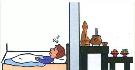 只有小庙的庙公才会睡在神像的后面(上海室内设计师培训)或神桌下面。一般人即不是庙公,也不是灵媒,千万不可如此睡。