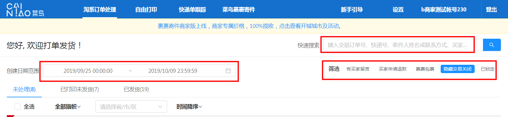 在淘系订单处理模块,可以进行淘系订单的搜索筛选、订单打标、淘宝(天猫)运营总监班以及订单管理,打单发货等操作。各字段定义如下: